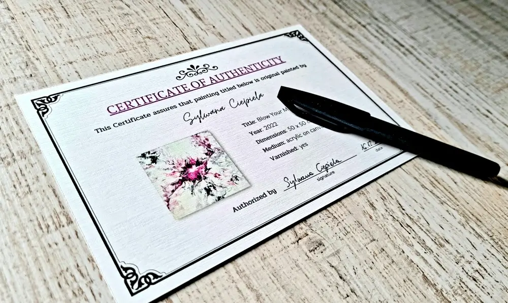 Oryginalne dzieło sztuki, sygnowane własnoręcznym podpisem artystki.